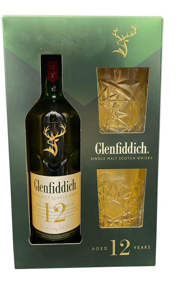 Glenfiddich 12yo 0,7l + 2 čaše poklon kutija